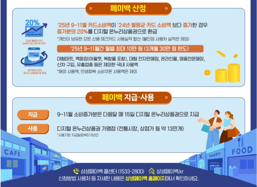 ‘상생페이백’은 2025년 9월부터 11월까지의 월별 카드 사용액이 2024년 월평균 사용액보다 많을 경우,