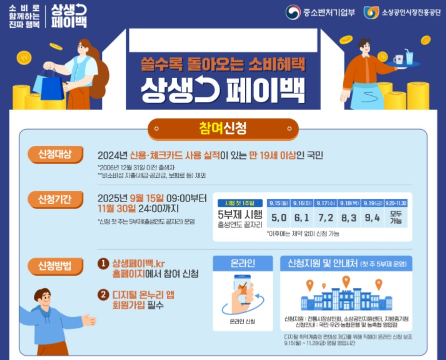 상생페이백 신청은 2025년 9월 15일(월) 오전 9시부터 11월 30일(일) 자정까지 가능합니다.