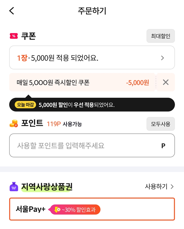 매일 5천 원 할인 덕분에 한 끼가 훨씬 더 즐거워졌어요.
