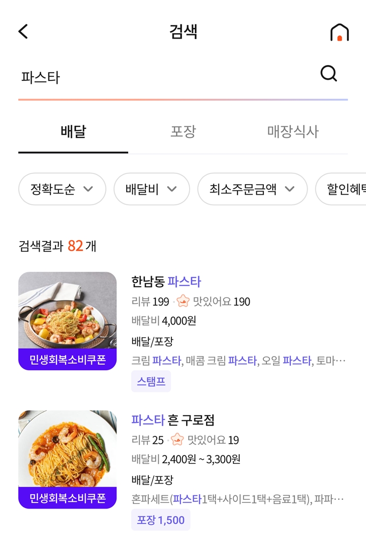 이 쿠폰은 배달뿐 아니라 포장, 매장 식사에도 사용이 가능해요. 또 주문 금액 2만 원에는 배달비도 포함되기 때문에 음식으로만 금액을 채울 필요가 없어요. 덕분에 배달비 때문에 망설였던 식당도 부담 없이 주문할 수 있었어요.