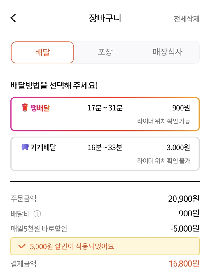 공공배달앱 할인, '땡겨요'에서 바로 적용되는 5천 원 할인 쿠폰